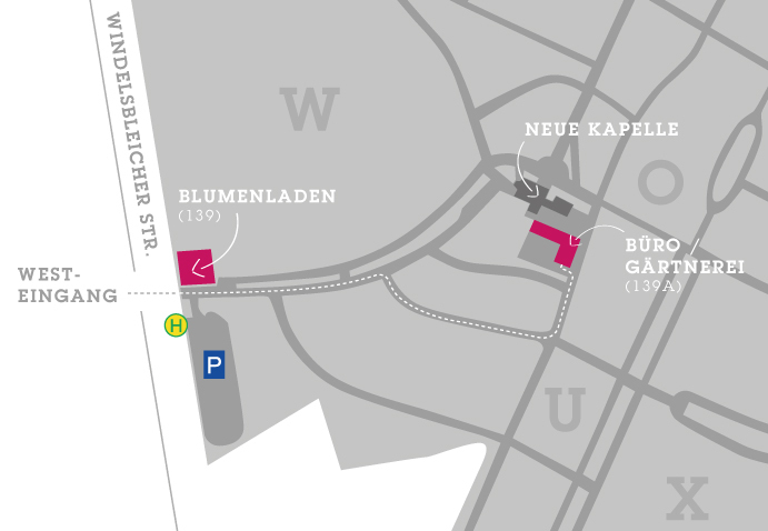 Dreiblatt hat zwei Standorte, jeder mit eigener Adresse. Unser Büro und unsere Gärtnerei finden Sie auf dem Gelände des Sennefriedhofs, direkt neben der neuen Kapelle. Unser Blumengeschäft befindet sich in der Windelsbleicher Straße 139, direkt am Westeingang des Sennefriedhofs. Unsere verschiedenen Abteilungen erreichen Sie wie folgt:
